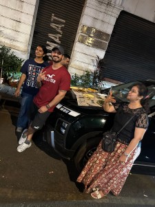 De restanten COVID, verkoudheid en jetlag weten we weg te drukken tot middernacht. Ondertussen onszelf overetend aan de curries van Delhi Darbar, genietend van koffie op stand in de Sea Lounge van het 5 sterren Taj Mahal Palace en pratend met de mensen die de felrode kip curry van Bagdadi restaurant nuttigen rondom de motorklep van hun auto. Het hoort erbij, reeds 135 jaar traditie in de straat recht tegenover ons hotel. Simpelweg omdat de populariteit de hoeveelheid beschikbare tafels overtreft. Is de voorzijde van het model iets te veel aflopend (ik denk aan de Audi) dan zorgt een waterfles onder de opening voor wonderen. Voila, een goed horizontaal vlak voor het kranten tafelkleed en de diverse bakjes met eten.