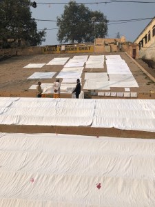 Morgen gaan we weer verder. Treinkaartjes zijn vandaag geregeld. We blijven nog even bij het heilige water. Sterker nog, we gaan naar de Sangam, zo’n 130 km westwaarts. Het punt waar van de drie heilige rivieren samenkomen. Daar waar over een maand de Kumbh Mela zal plaatsvinden. Gebeurt eens in de 12 jaar en er worden 40 miljoen pelgrims verwacht die dan allemaal op of mijn verjaardag een heilige dip nemen. Dit is weer zoiets waar we een paar weken terug nog nooit van gehoord hadden, ook al is het een van de grootste religieuze evenementen ter wereld. Snel verder lezen in het boek van Ilija Trojanow. Hij was er bij en schrijft erover.