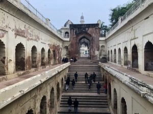 Tussen de twee eerder genoemde Imambara’s staat de monumentale poort Rumi Darwaza, ooit de toegangspoort tot de stad. Groot, indrukwekkend groot. Met een kameel op de ‘parking’ voor de ideale foto. Hij sloft midden tussen de tuktuks, brommers en eetstalletjes terwijl wij op onze Uber taxi wachten. Die vervolgens om een paar koeien heen moet rijden voordat we kunnen instappen. Nu ik dit opschrijf zie ik het beeld weer voor me. Bizarre combinaties die haast gewoon worden naarmate we hier langer zijn.