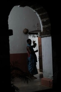 Veel romantischer kun je het niet bedenken. Afgeronde houten deurtjes en een goud geverfde rand in de muur gekerfd. Het is niet perse luxe, wel uniek en het eten is ronduit geweldig. De kok is de zesde generatie in de familie die voor Debjit’s familie kookt. Tradities worden hier duidelijk gehandhaafd en ze zijn inmiddels haast familie. Het is echter Namrata die bepaalt wat er op tafel komt. We hebben hier in totaal twaalf maaltijden gehad en buiten de vaste waarde van rijst en roti was er nooit een terugkerend gerecht. Lunch en diner brachten minimaal 4 tot 5 verschillende gerechten op de grote tafel. Ik denk dat ik nog ga dromen van haar tomaten chutney, de garnalen currie en alle aubergine en pompoengerechten. Zó rijk van smaak!