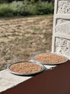 Langzamerhand worden ze steeds meer zelfvoorzienend. Hun grote wens, al moest hun melk bedrijf met 28 koeien gestopt worden tijdens de Covid, dus zelfgemaakte yoghurt zit er niet in. Keurend check ze de kwaliteit van de yoghurt voordat we het zelf mogen proeven. Kwaliteit boven alles.
