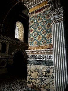 Buiten schijnt de zon en we lopen richting de basiliek van San Clemente. Van buiten niet heel bijzonder, een ‘gewoon’ mooie kerk, iets verderop staat het Colosseum te pronken en ik gok dan ook dat veel mensen er straal voorbij lopen. En dat is zonde, want binnen in San Clemente daal je letterlijk de geschiedenis in.