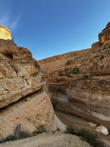 Idyllisch? Jazeker. Dadels plukken, glas rosé erbij (de eigenaar is half Frans, dus we hebben zowaar wijnglazen). Helaas is het comfort echter iets minder dan we hoopten. De douche is een avontuur: de druk is nihil en de temperatuur schommelt tussen kokend heet en ijskoud. De volgende ochtend is er zelfs helemaal geen water. Ik promoveer mezelf tot lieftallige assistent van de eigenaar en draai op verzoek diverse kranen open en dicht, terwijl Joris alvast praktisch (en enigszins sceptisch) om een emmer vraagt. Mede omdat het toilet niet doorspoelt en er tenslotte water genoeg in het zwembad zit. Na een uurtje klooien geven we de eigenaar de vrije hand. Wij gaan ondertussen de omgeving verkennen.