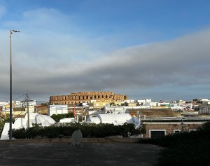 Joris heeft deze keer de overnachtingsplek uitgezocht. Er zijn twee mogelijkheden, meer keuze is er niet, en hij heeft zijn zinnen gezet op Hotel Julius. De naam alleen al doet vermoeden dat de eigenaar last heeft van een lichte vorm van grootheidswaanzin, en die vermoedens worden bij aankomst direct bevestigd. Het gebouw probeert krampachtig het beroemde Romeinse amfitheater na te bootsen: rond gebouwd, met een binnenplaats en galerijen. Dat het échte amfitheater, het op twee na grootste ter wereld, vanuit onze kamer te zien is, maakt de poging des te aandoenlijker.